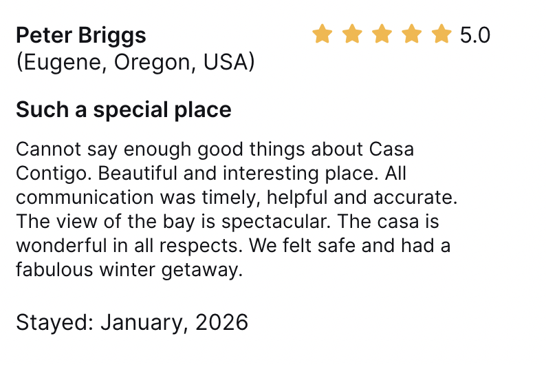 The Casita is the owners’ private Mexican beach-style loft offering serene filtered ocean views. It is tucked among swaying palms and a large fig tree with its own iguana family.